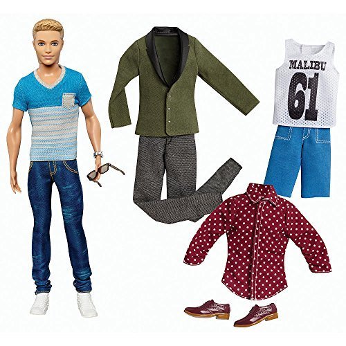 With a girlfriend as busy as Barbie doll, Ken needs to be ready for anything, and so does his wardrobe. Ken doll comes with seven items of clothing made to mix and match for any occasion. Glam it up with an on-trend button-down shirt and cool blazer or stay casual in shorts and a tank. Get ready to hit the dance floor in dress shoes or take to the street with sneakers and sunglasses, perfect for a sunny day. Throw on the sunglasses for a cool statement on sunny days. Doll cannot stand alone. Ages 3 and older.