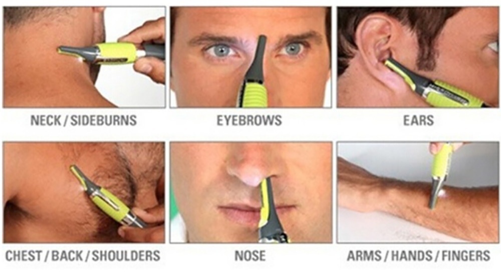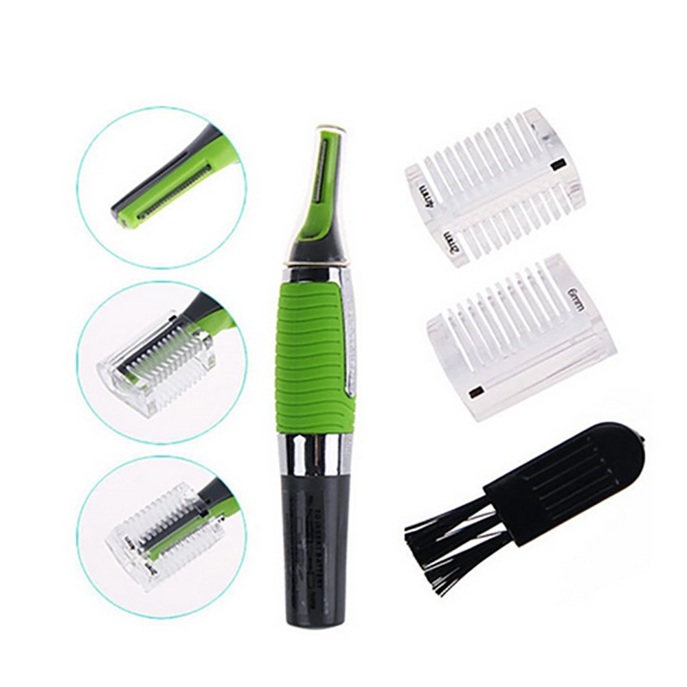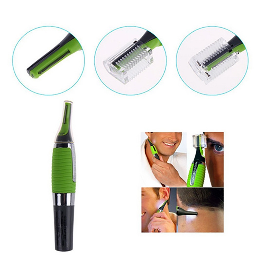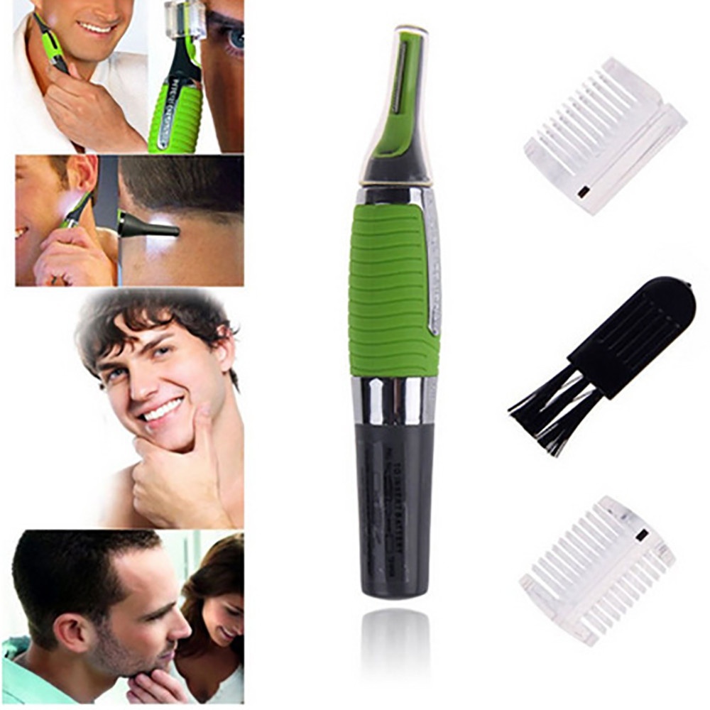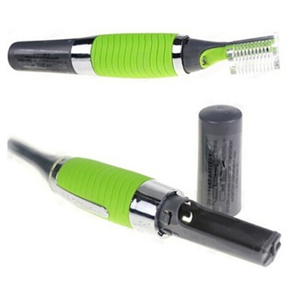 lease put the Battery in a right place or the light will not work Functions:Face,neck,nose,eyebrow mustache and body hairs moving Material:ABS Color:Green in Rubber non-slip grip,Grey in rear cover,Silver in other parts Standard:one set of hair trimmer + a cleaning brush + 2comb attachments Package Size:21.5cmx10.5cmx3cm Item No.:672414 Features: 1.2pcs comb to trimming different length hair,Brush to clean the trimmer; 2.Hypoallergenic with a stainless steel blade,Comfortable and safe; 3.Professional personal shaver with light weight design; 4.Powered by one AAA battery(not included); 5.LED lights in(Man Trimmer Shaver) .u0026nbsp;