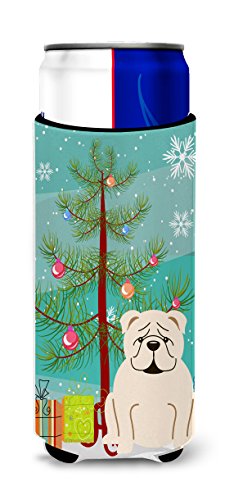 Caroline's Treasures BB4248MUK Merry Christmas Tree English Bulldog White Michelob Ultra Hugger for Slim Cans, Multicolor