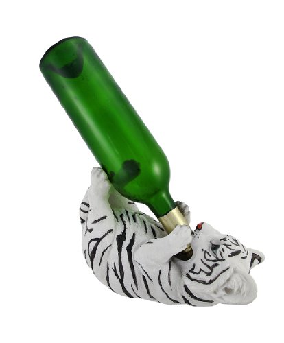 White Bengal Tiger Cub Tabletop Single Wine Bottle Holder Display