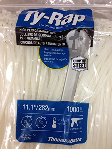 TY26M Cable Tie 40lb 11" Natural Nylon with Stainless Steel Locking Device Bulk Pack 1000 Per Bag
