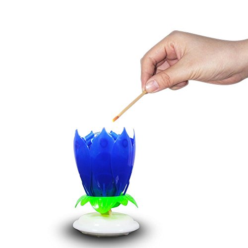 - Feature : Warning:please light the candle firework central with 45 degree oblique angle,DO NOT lighting central firework by vertical! / One time use only!!!! The candles are consisting of three parts: beautiful music, waterproof candlewick. / Packaged included 6x birthday candles,Approx Size: 5;Lights 8 Smaller Candles / They are adopted with the newest techniques of remote electronic music, of safe squirt blossom flame in candles, of waterproof and no candle drops. / The Amazing Birthday Candle is lit in the center and then opens its flower petals and lights the candle on each petal,No Lighting Stick Needed, It rotates and plays 'Happy Birthday to You.' Will be the hit of any birthday party!!!