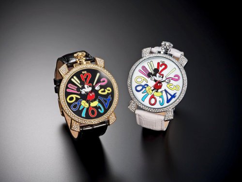 大きな文字盤いっぱいにデザインされた色とりどりの数字の上に可愛いミッキーインパクトと可愛さを両方を演出。少し膨らんだドーム型のガラスに文字盤には天然ダイヤモンド2石。