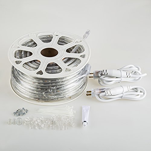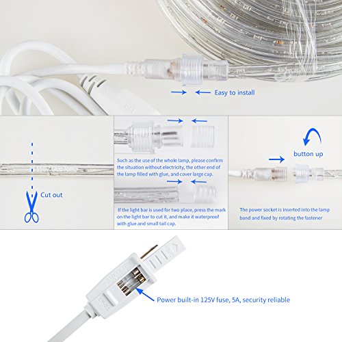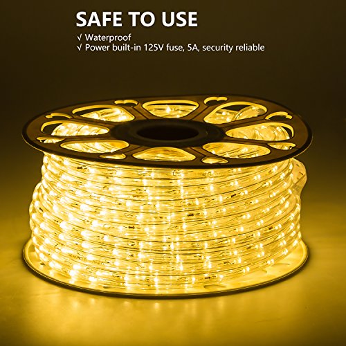 GuoTonG 131.2ft Plugin Rope Lights, 1440 Warm White LEDs, 110V, 2 Wire, Waterproof, Connectable, Power Socket Connector Fuse Holder, Indoor/Outdoor Use, Ideal for Backyards, Decorative Lighting