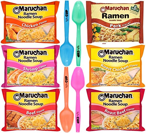 Maruchan Ramen Noodle Soup Variety - 6 Flavors, Pack of 24 & Limited Edition By The Cup Spoons