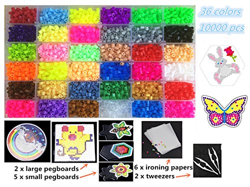 - Craft Beading Kit - 10,000 mini perler beads in 36 different colors.