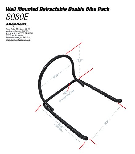 Shepherd Hardware 8080E Fold-Away Wall Mounted Dual Bike Rack, Black