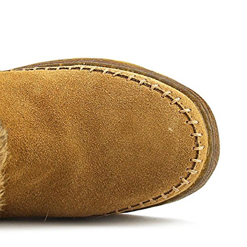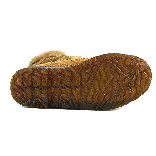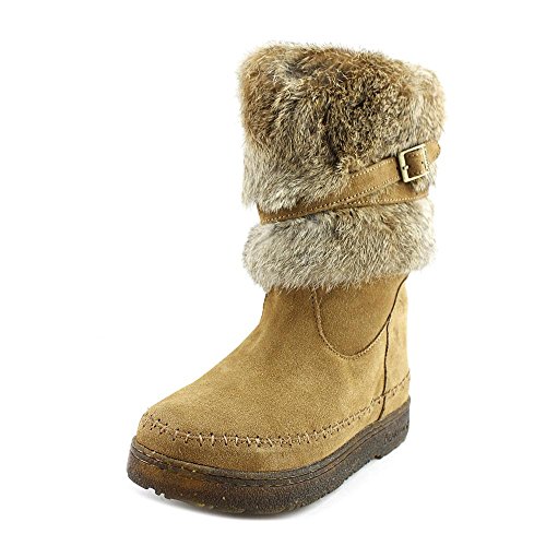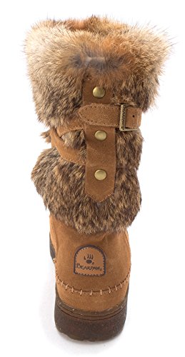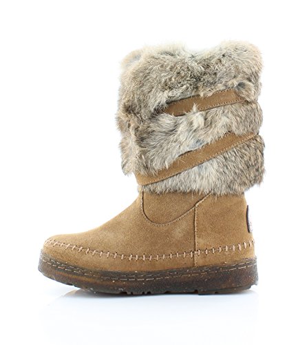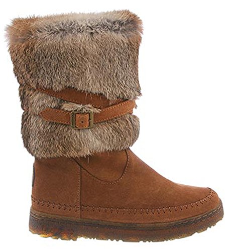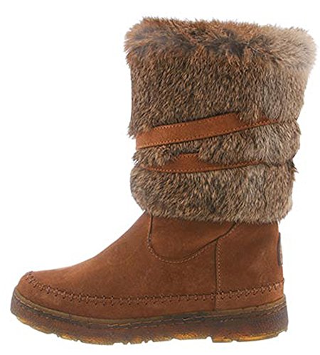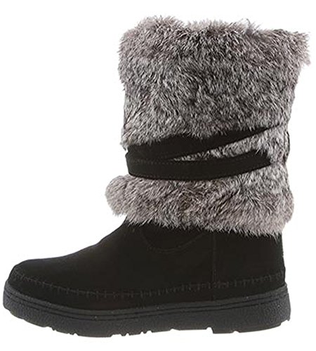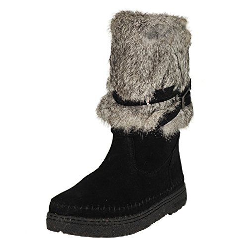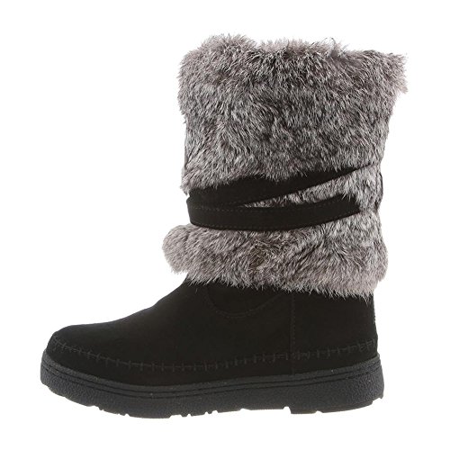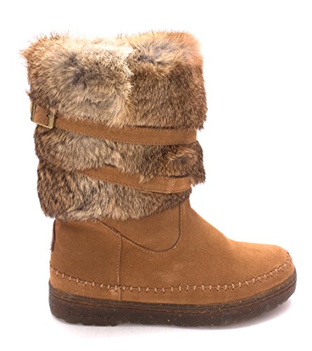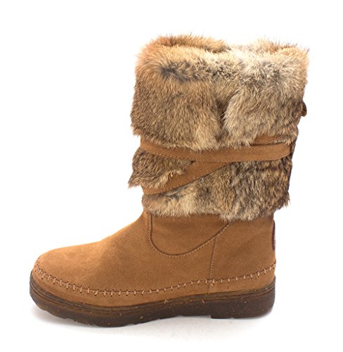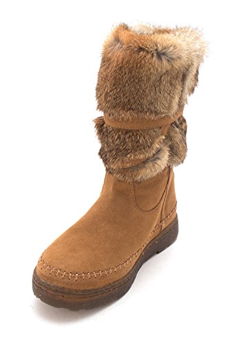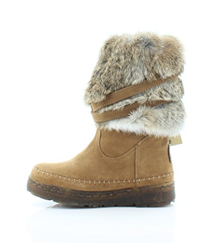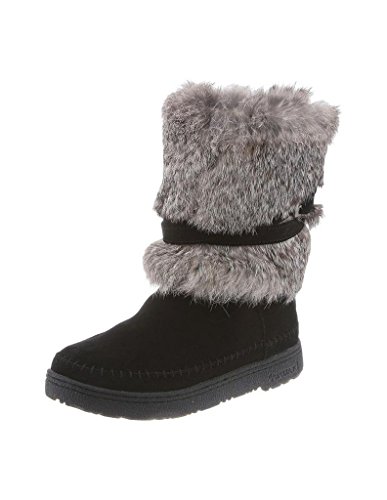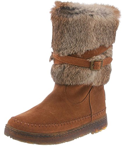 Product DescriptionBoth rugged and feminine, this 10" sustainable rabbit fur and cow suede boot with wrap around straps offers cold weather comfort and class.0