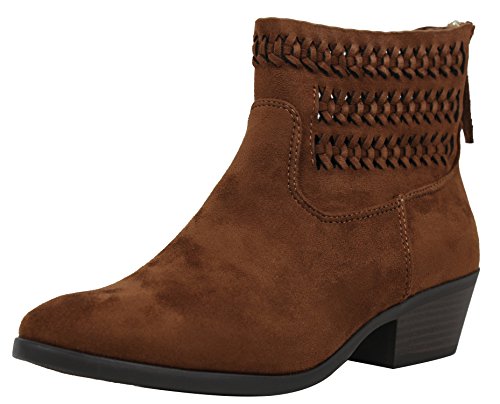 Soda Women's Faux Suede Braided High Top Low Heel Ankle Bootie (Chestnut, 8 B(M) US)