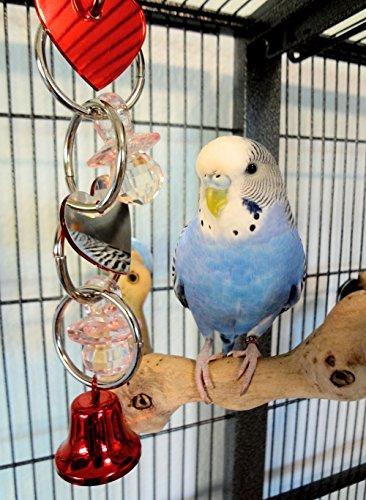 -. Feature : Approx 2 inches wide and about 9 inches long / Great for small birds / Has new crystal cut pacifiers and plastic heart mirror / All bird safe materials. / Quick link for easy cage placement.