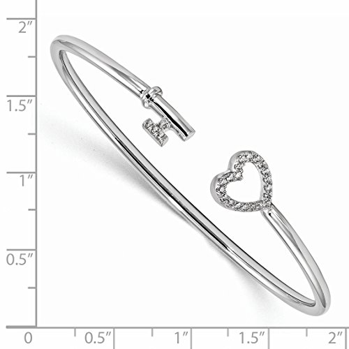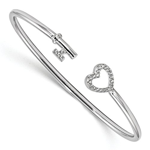ICECARATS DESIGNER JEWELRY 925 STERLING SILVER CUBIC ZIRCONIA CZ HEART KEY FLEXIBLE BANGLE BRACELET CUFF EXPANDABLE STACKABLE FOR WOMEN