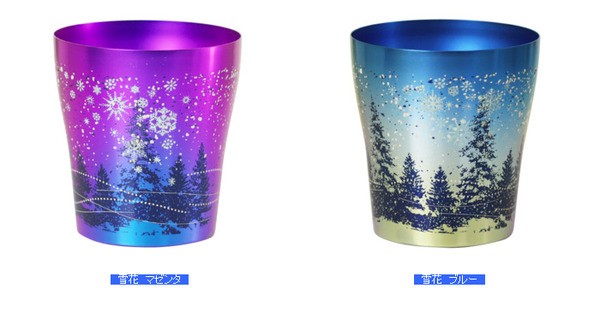 新潟県燕産 チタン製 二重タンブラー 華チタン 250cc 雪花 ブルー