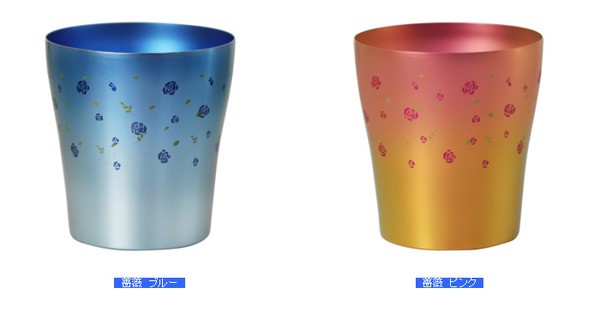 新潟県燕産 チタン製 二重タンブラー 華チタン 250cc 薔薇 ブルー