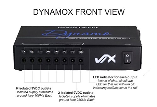 Vervetronix Dynamo 6 Isolated Independent 100 mA plus 2 Isolated 250 mA Outputs Power Supply w/ 3 Cables
