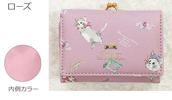 小さいカバンにピッタリの小さなお財布です。小さいながらも収納は充実♪ふわふわでかわいい、おてんばな猫ちゃんの柄です。