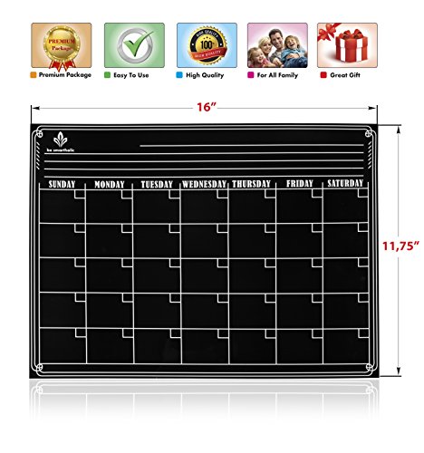 THE BEST FORMAT and SIZE: the dimensions of this black horizontal chalkboard are 16" wide and 11.75" that mean you have enough room in each cell for planning of your monthly activities.