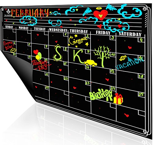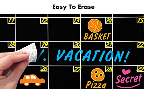 PERFECT BLACK CHALKBOARD: combination of high-quality materials, stylish design, attractive color and PREMIUM PACKAGE makes this monthly dry erase calendar the best choice for a PRESENT for everyone.