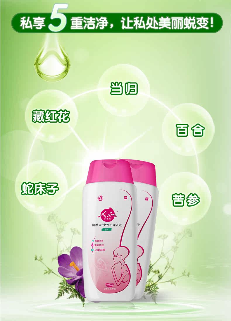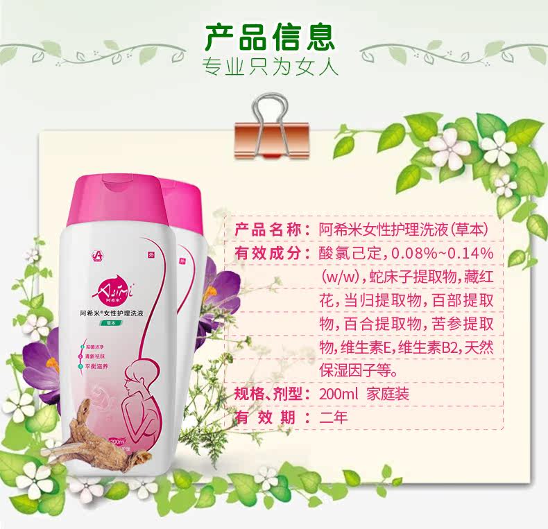 阿希米草本女性私处妇科洗液 温和抑菌去异味200ml*2支私处护理液