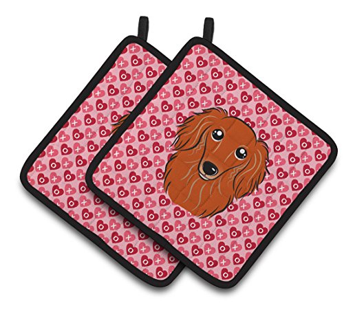 Caroline's Treasures Longhair Red Dachshund Hearts Pair of Pot Holders, 7.5HX7.5W, Multicolor
