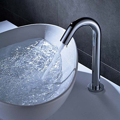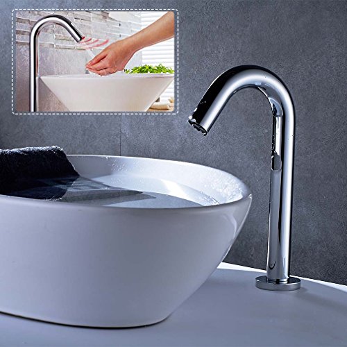 ROVATE Automatic Sensor Basin Faucet, Brass Bathroom Sink Bath Tub Waterfall Faucet Deck Mounted on Sink, Polished Chrome