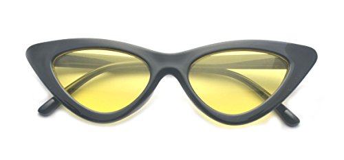 Features and Benefits 1.Lens Width:48mm 2.Exaggerated Slim Cat Eye Frame 3.Fun Color Tinted Lens 4.High Sitting Arms 5.Reinforced Metal Hinges 6.100% UV400 Protection