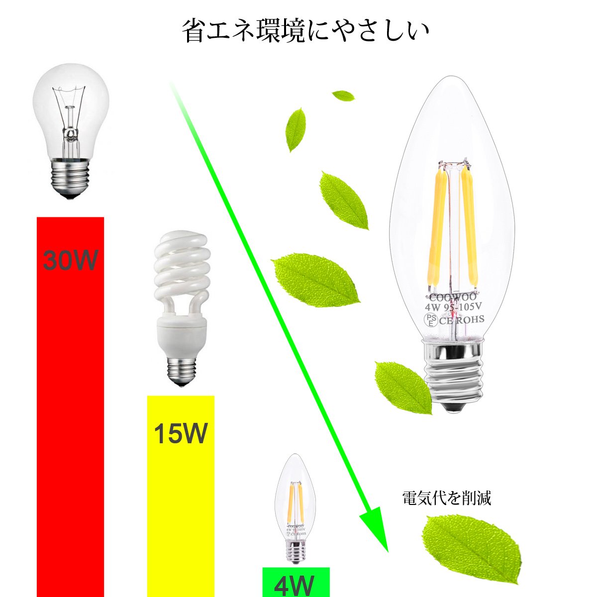 · Electricity consumption is cheap with a tenth of the incandescent light bulb, and low heat generation