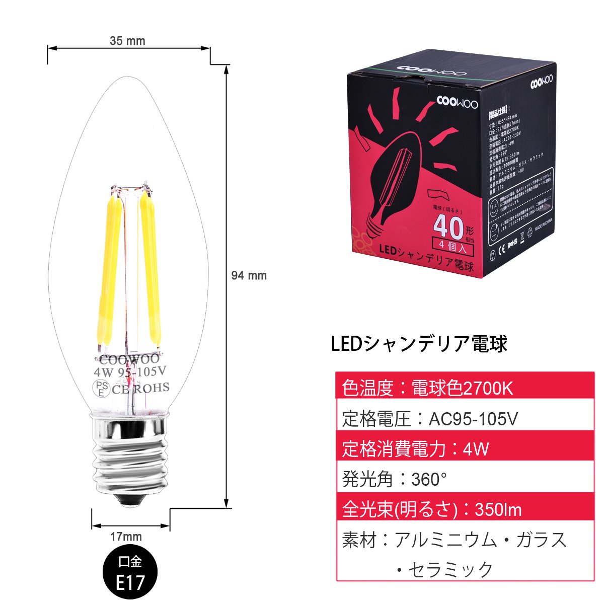 Light emission angle: 360 °