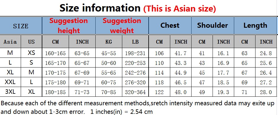 Height 175cm, weight 75kg, suitable to wear size XXL