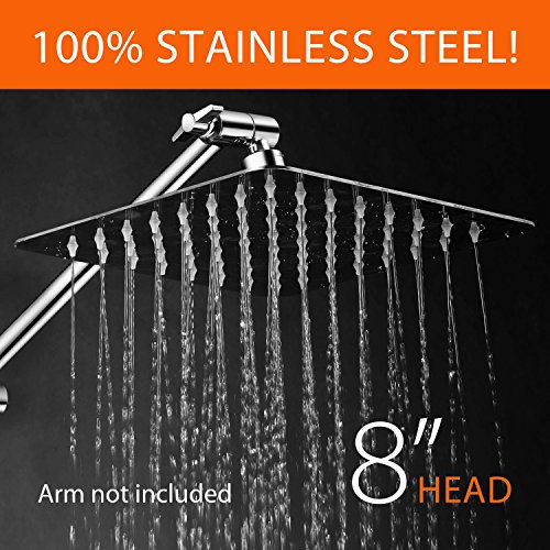 RAIN SHOWER HEAD: Extra Large Square Stainless Steel 8 inch by 8 inch Rain Showerhead. This Premium Quality Rainfall Showerhead can be found in Top-rated Hotels and Spas! High-fashion Ergonomic Slimline design adds style and ambiance to your bath décor