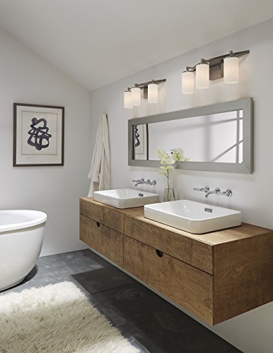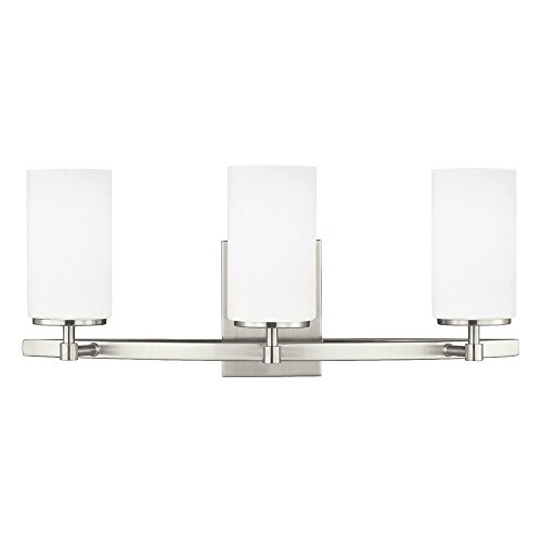Sea Gull Lighting 4424603-962 Alturas Three-Light Bath or Wall Light Fixture with Etched White Inside Glass Shades, Brushed Nickel Finish