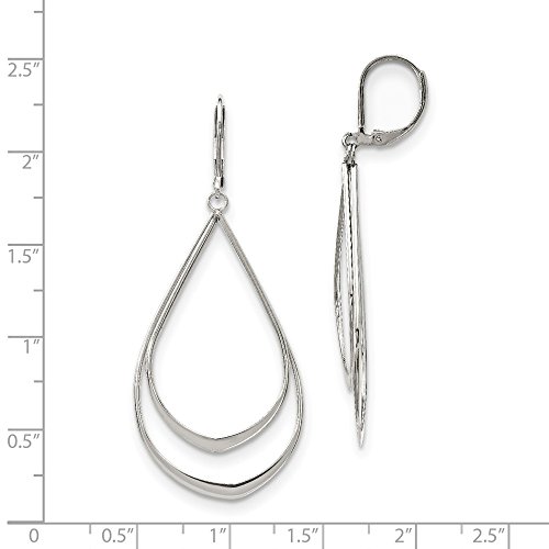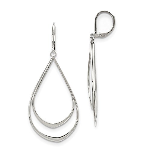 Stainless Steel Polished Double Tear-drop Leverback Dangle Earrings (23.6mm x 56.7mm)