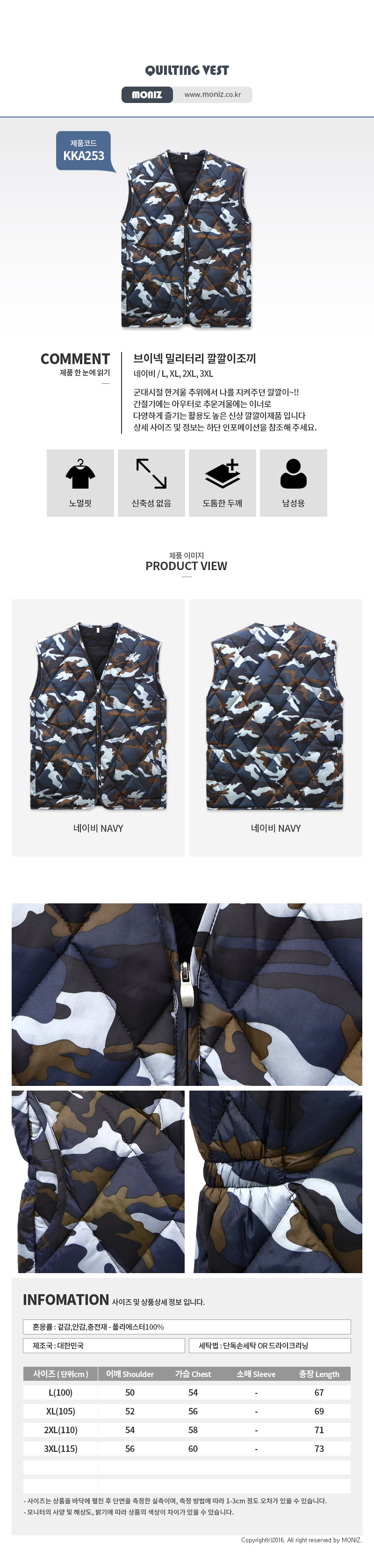 [Moniz] V neck military quilting vest KKA253