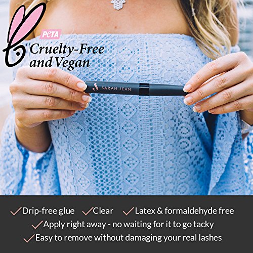 - CRUELTY FREE & VEGAN FRIENDLY EYELASHES WITH EYELASH GLUE: The Sarah Jean lash products are certified cruelty free and vegan by PETA. With proper care, the Sarah Jean vegan fake eyelashes are reusable; simply remove and place back onto the tray for future use!