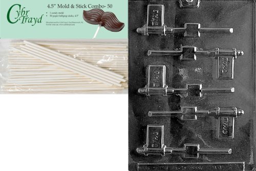 Cybrtrayd Purim Pop Chocolate Candy Mold with 50 4.5-Inch Lollipop Sticks and Exclusive Cybrtrayd Copyrighted Chocolate Molding Instructions