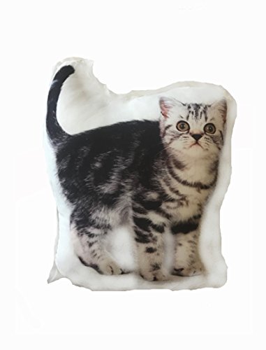 Cat Themed Accent Pillow with Fur Trim, Tabby Kitten, 14.5" x 10" x 4".