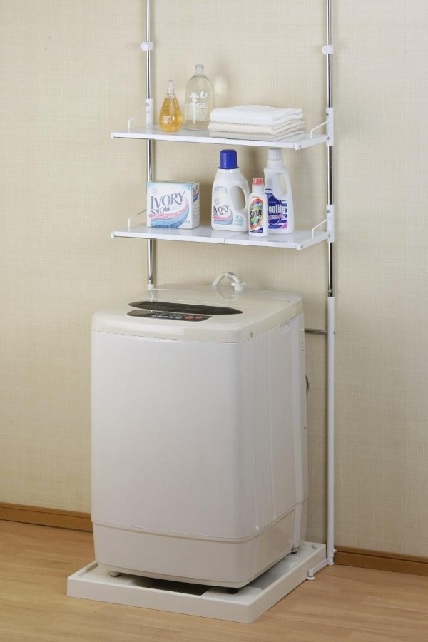 | 洗濯機は動かさずに、ラクラクと設置が可能です。脚元がそれぞれ伸縮しますので、段差にも対応できます。棚板は丈夫なABS樹脂製。汚れても簡単に洗えて便利です。 |