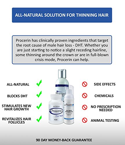 -. Feature : Procerin Oral Supplement: Blocks DHT without reacting to testosterone / Procein XT Foam: Prevents DHT from binding to hair follice / Procerin Shampoo: Promotes a healthy scalp to assist with hair regrowth / Safe & Natural: All ingredients are derived from natural sources / Clinically Proven: The Procerin System has been clinically proven to work
