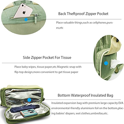 Service Satisfaction Guarantee: 24-Hour Customer Support,30-Day 100% Money Back,2-Year Warranty. Acwenie baby diaper nappy backpack is the one with large capacity which collects design patent and practical new invention patent. Wonderful space and considerate design makes this diaper bag backpack be the necessity for parents. Tested by SGS Environmental Protection. Nontoxic, Odorless and BPA-Free. Technical Parameters: Net Weight: 0.85KG (30OZ) Diaper Bag: 12.6" * 8.3" * 14.6" Changing Mat/Pad: 18.5" * 12.8" Side Pocket:6.7"*5.5" The maximum height between stoller strap and the main bag: 9.8" Package: Main Backpack *1 Insulated Sleeve *1 Changing Mat/Pad *1 Stroller Strap *2 0 |