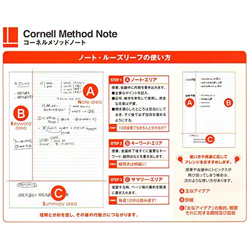 A4 size of large format Cornell method notes. Easy grid ruled that draw the figure.