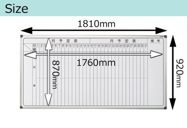 | サイズ | 板面寸法:W1810×H920mm、板面有効寸法:W1760×H870mm、粉受長さ:1780mm 個装サイズ:195×5×94cm |