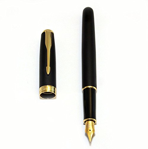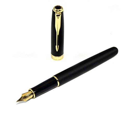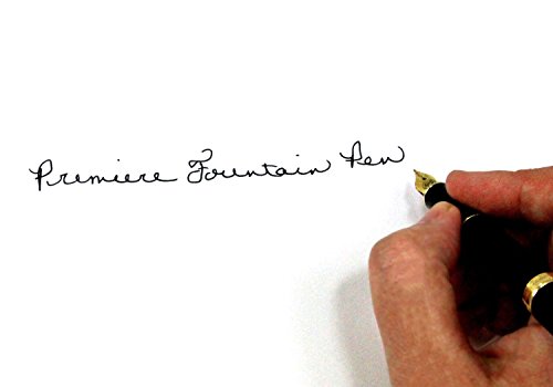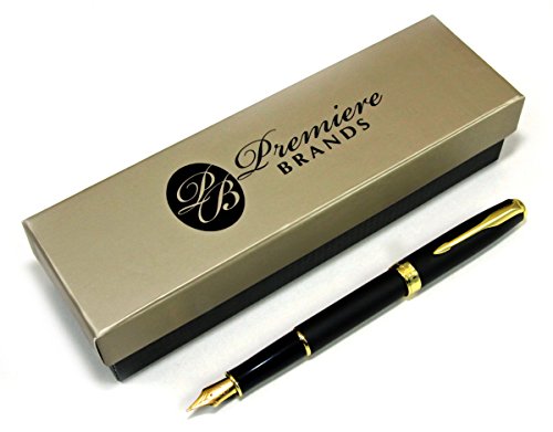 Classic Fountain Pen by Premiere. Matte Black Finish, Gold Plated Clip, Trim and Medium Fine Nib, Executive Business Writing, Journaling and Signature Pen. Ink Refill Converter and 1 Ink Cartridge