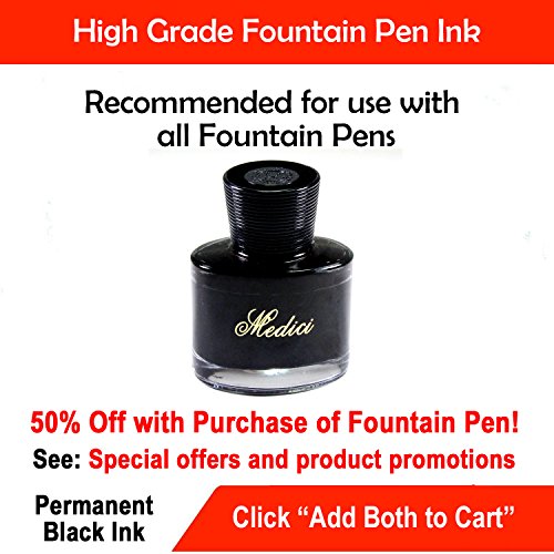 Included Ink Charger for easy filling from bottled ink (NOT included). 1 Ink Cartridge IS included for your convenience. However we highly recommend that you order Bottled Ink for cost savings and easy filling. Search item # B06X6GBGHF to order bottled ink. OR, search item # B0711M4VBD to order this Pen bundled with our Medici Bottled Ink