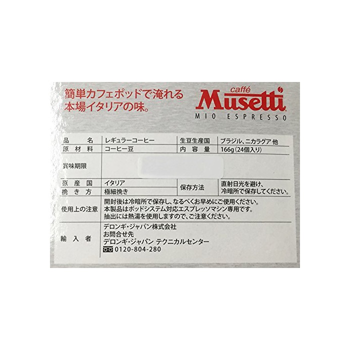 원본상품명: Musetti(ムセッティ) クレミッシモ カフェポッド 24個入り 箱