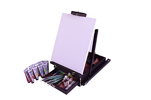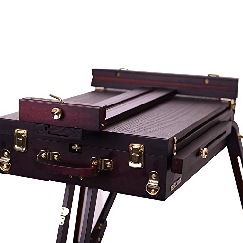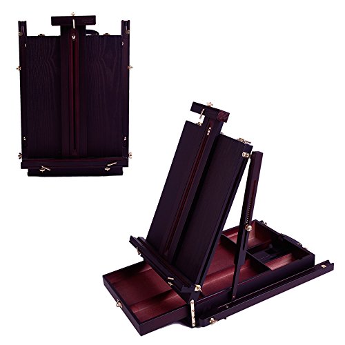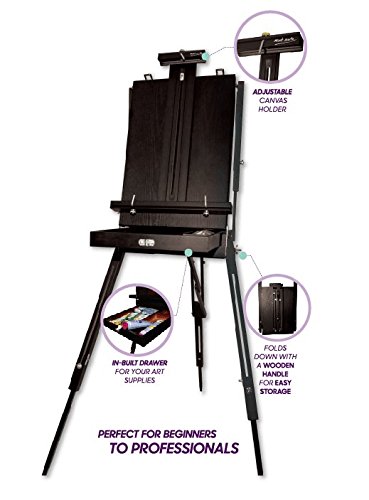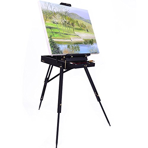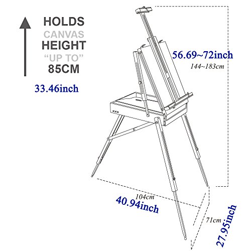 -. Feature : Easel folds down for easy storage,this easel is great portable easel ideal for your art work or large studios. You can take easel anywhere you want to travel . / Easel contains a draw for all your supplies, easels are fully adjustable field easel and storage unit all in one. • Fully Assembled, Brass hardware, Lightweight with wooden handle, Very Portable. / Easel has telescopic legs to accommodate sitting or standing, and easels are stable. The easel folds down for easy storage, with a strap for convenient carry. / Easel Includes a wooden palette, perfect for you art work or your painting. • Contains a draw for all your supplies, Full size wooden palette -11.2"x 18". / Easel holds canvas up to 34 1/4", Dimensions - height -72", width - 40.94", depth - 27.95". Adjustable legs and canvas holder--Folds down to be a tabletop box easel.
