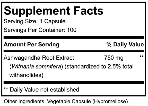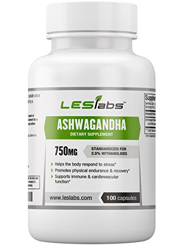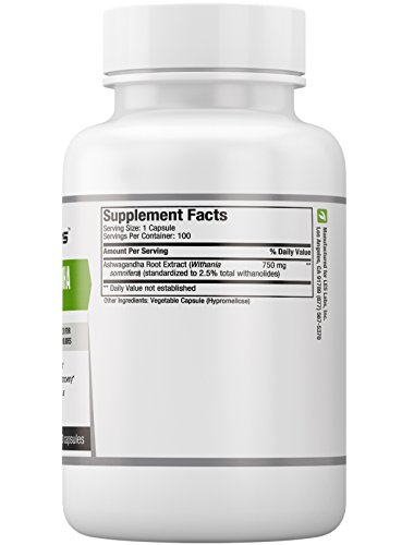 LES Labs Ashwagandha Extract, Non-GMO Supplement, 2.5% Withanolides, 750mg, 100 Capsules
