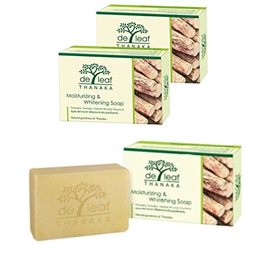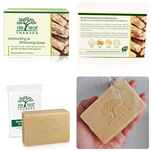 -. Feature : The "De Leaf" Thanaka soap is made from rich composition of Thanaka, Turmeric, Vitamin B3 , Vitamin E and natural glycerin . With its foamy gentle and high moisture formula , it effectively cleanses and nourishes your skin , exfoliates your skin to look brighten , ultimately gives silky soft and smooth skin. / Anti-aging effectively. Reduce existing wrinkles , youthful skin with powerful antioxidants / Reduction of freckles, dark spots and scars are effectively. / Whitening the skin safety because it is a natural herbal. / Sun protection to the skin as well. Without Chemicals