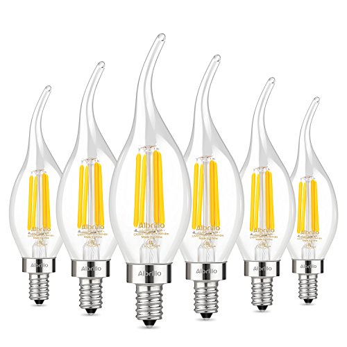 Albrillo E12 LED Chandelier Light Bulbs 4W, 40 Watt Candelabra Bulb Equivalent, 2700K Warm White, Flame Tip, 6 Pack