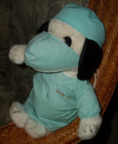 -. Title : Original Peanuts Plush 11" Snoopy Doll in Surgeon, Doctor, M.D. Scrubs Outfit