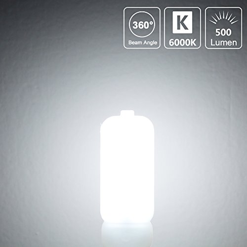 DiCUNO G9 LED Light Bulb, 5W (50W Halogen Bulb Replacement ) 500lumen, 6000k Daylight White, G9 Bi Pin Base,Non-Dimmable, AC 110-130V JCD Type, Chandeliers, Bathroom, Ceiling Lights,6-Pack