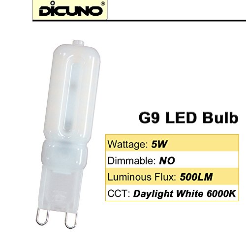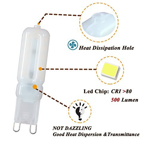 - ✔ Super bright but natural light G9 LED. Equivalent to 50W Incandescent bulbs, 500 lumen of light output, 6000k Daylight white. Energy Saving. Save 90% on electricity bill.